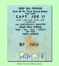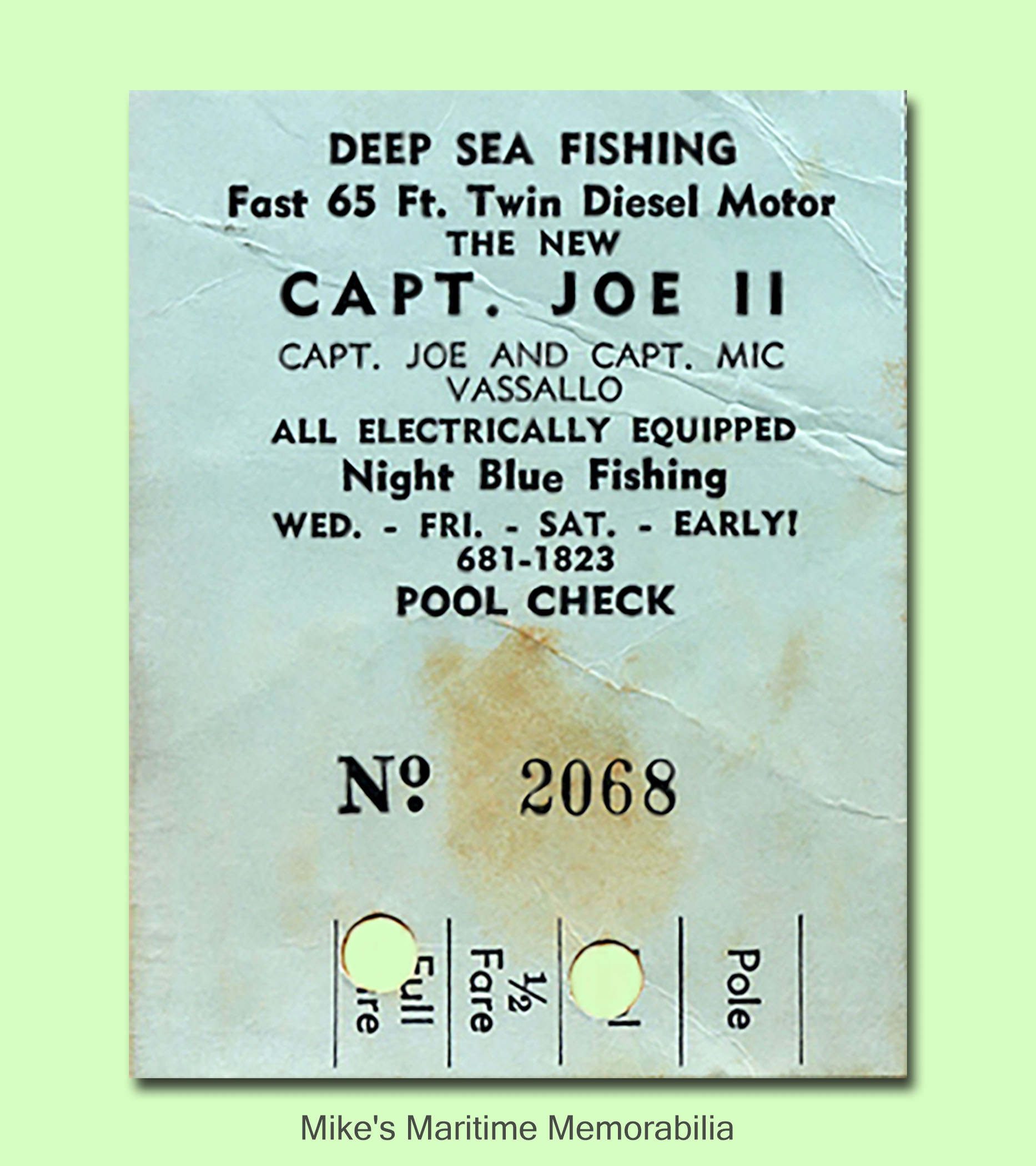 IN MEMORIAM - CAPTAIN MICKEY VASSALLO 1941-2007 CAPT. JOE II, Belmar, NJ – 1964 CAPTAIN JOE II Fare Ticket, Belmar, NJ – 1979 CAPT. JOE II, Belmar, NJ – 1980 Captain Mickey fishing in Florida Captain Mickey fishing in Florida Captain Mickey fishing in Florida Captain Mickey fishing in Florida Captain Mickey fishing in Florida Captain Mickey fishing in Florida Captain Mickey fishing in Florida Captain Mickey fishing in Florida Captain Mickey fishing in Florida Captain Mickey havin' a fling with the Ling Captain Fred Moore 1926 - 2008Captain Tom Marconi 1939 - 2006