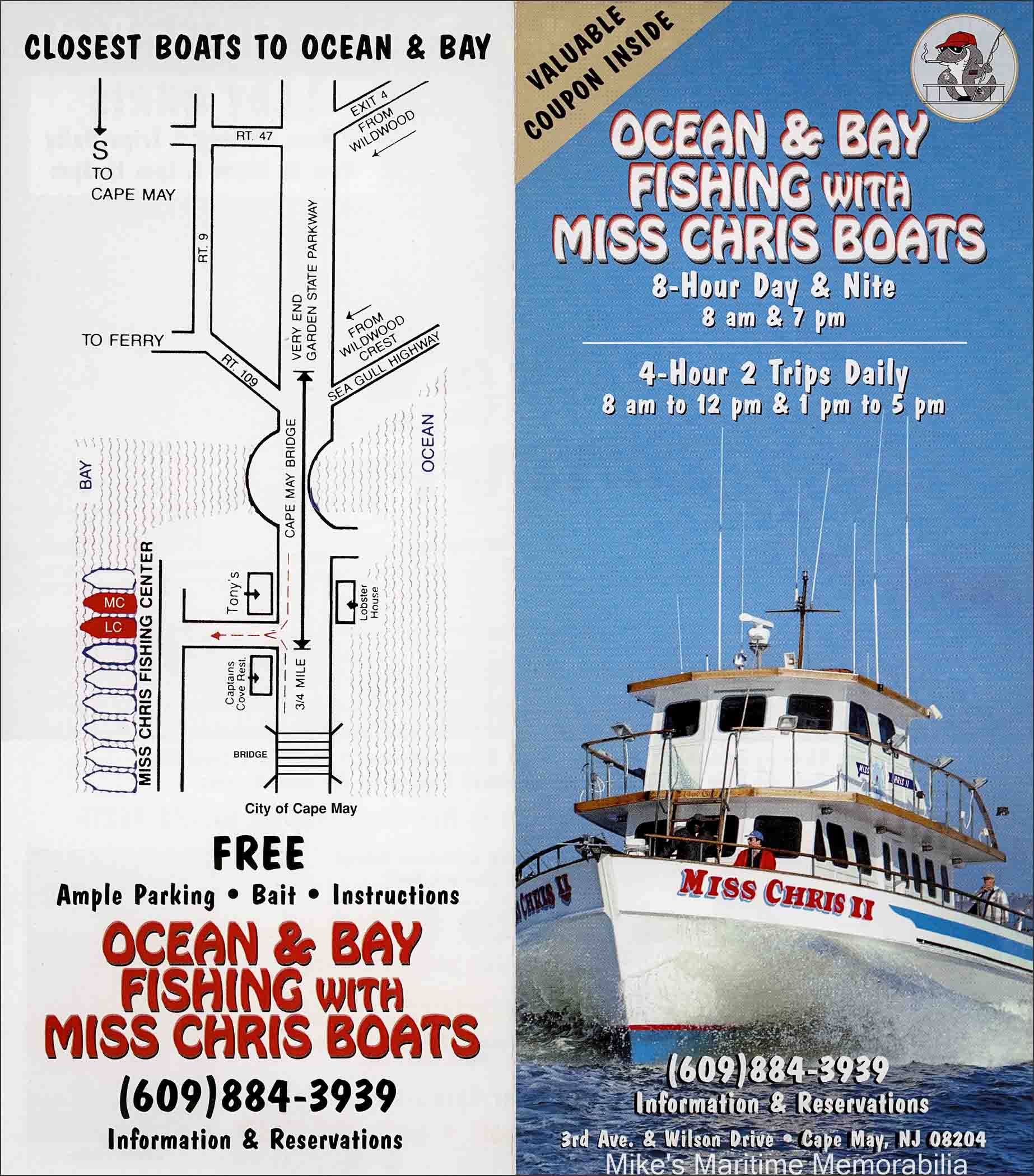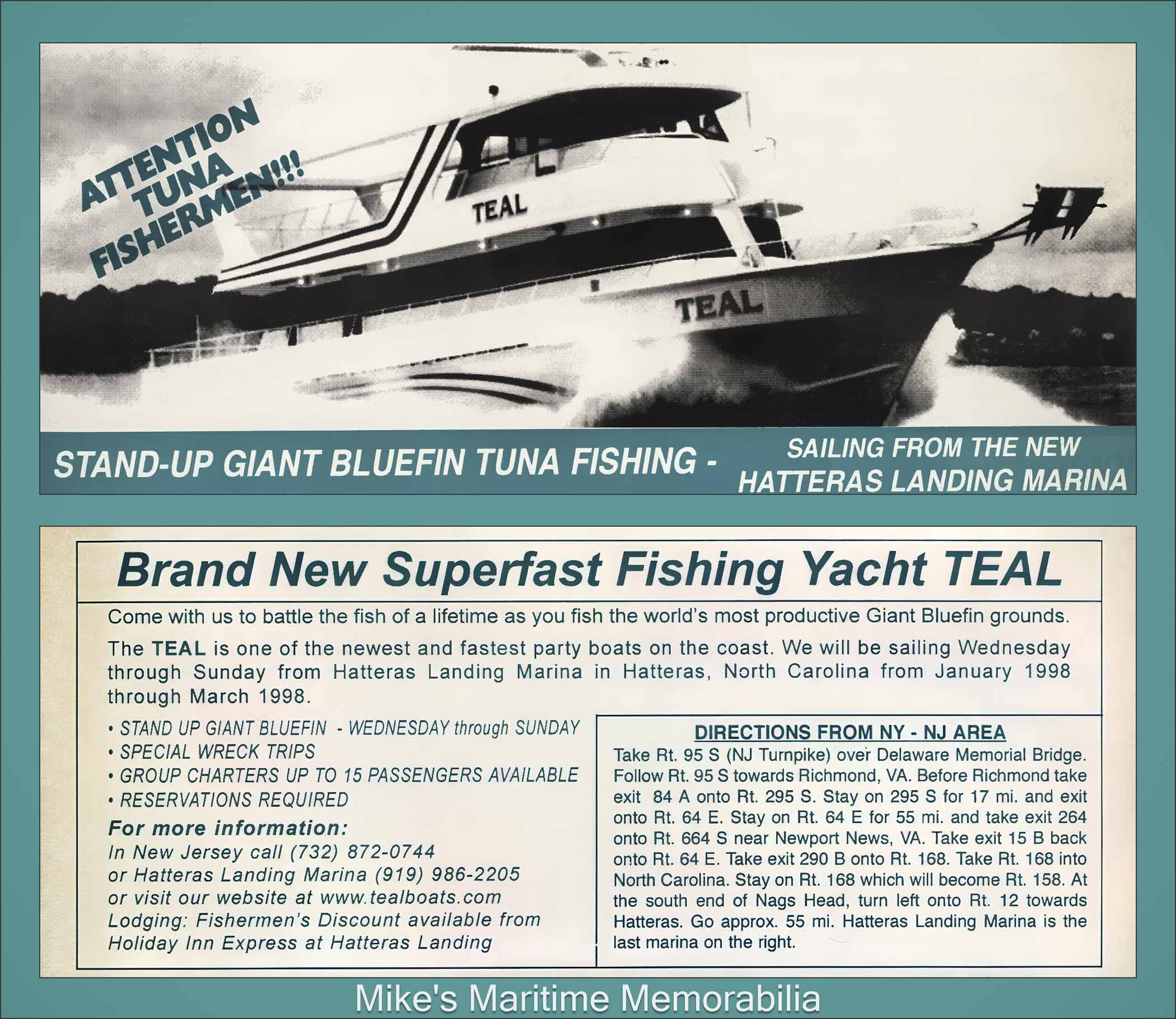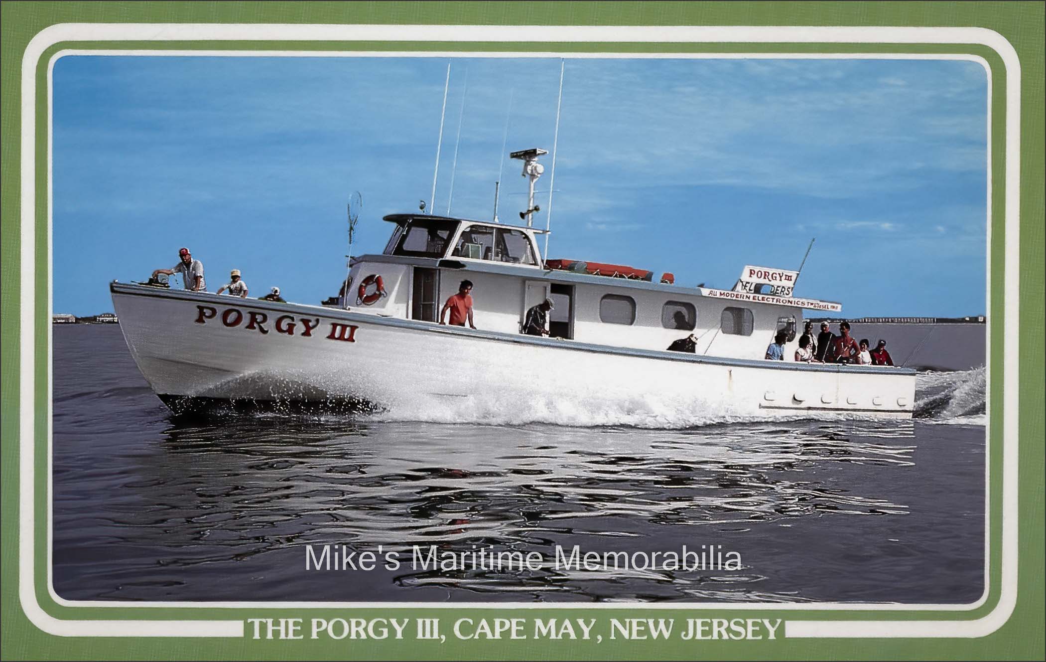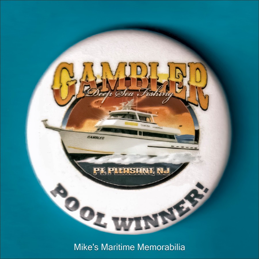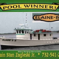 PASTIME PRINCESS Shirt, Brooklyn, NY – 1997 TEAL Hoodie – 1998 MISS CHRIS II Brochure, Cape May, NJ – 1990 SEA HORSE Key Ring, Atlantic Highlands, NJ – 1990 MISS BARNEGAT LIGHT Pin, Barnegat Light, NJ – 1992 NORMA K III Postcard, Point Pleasant Beach, NJ – 1993 PORGY III Postcard, Cape May, NJ – 1995 FREDDY-C T-shirt, Leonardo, NJ – 1997 TEAL at Hatteras, NC Advertising Card – 1998 BROOKLYN VI Tee Shirt – 2005 MISTY MORN Cap, South Amboy, NJ – 2005 PORGY IV Shirt, Cape May, NJ – 2010 SEA HAWK Tee Shirt – 2010 GAMBLER Pin, Point Pleasant Beach, NJ – 2017 ATLANTIC STAR Tattoo, Atlantic Highlands, NJ – 2019 ELAINE B II Pool Winner Magnet, Highlands, NJ – 2020 Memorabilia - Page 6