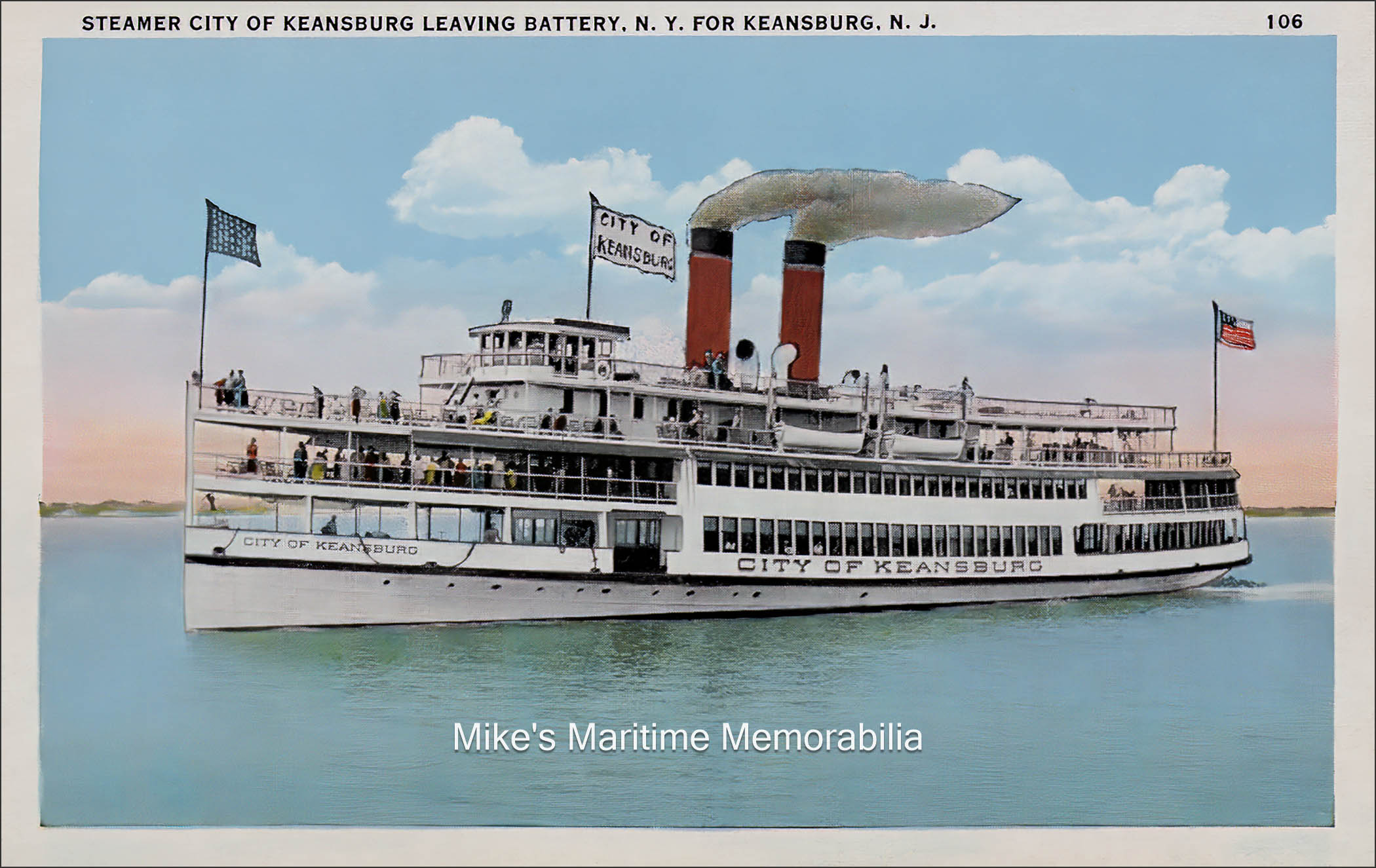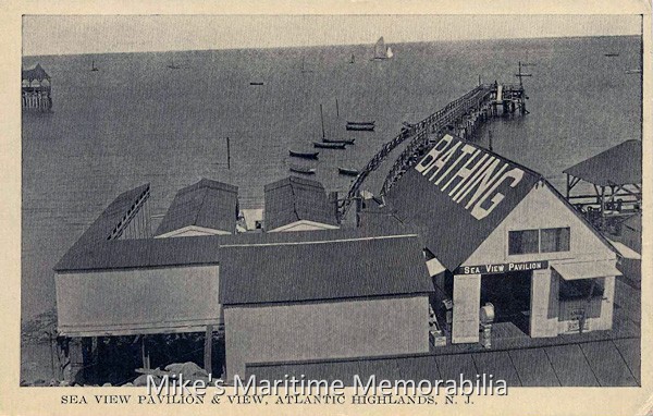 U.S. Life Savers team, Atlantic City, NJ – 1904 Wreck of the NORA, Anglesea, NJ – 1906 Lusitania postcard – 1907 Submarine boat Plunger – 1909 The old ferry slip at Perth Amboy, NJ – 1909 Wreck of the Brazoria, Atlantic City, NJ – 1909 Pilot Boat NEW YORK, New York, NY – 1910 GOLDEN HOPE Houseboat – 1911 Steamer KEANSBURG, Keansburg, NJ – 1913 Sandy Hook Telegraph Towers, Sandy Hook, NJ – 1913 Sea View Bathing Pavilion, Atlantic Highlands, NJ – 1914 Wreck of the Queen Louise, Manasquan, NJ – 1914 Steamer SEA BIRD, Highlands, NJ – 1916 CHANCELLOR, Merritt & Chapman Derrick & Wrecking Co. – 1920 S.S. White Dental Works, Staten Island, NY – 1922 Steamer MONMOUTH, Atlantic Highlands, NJ – 1922 NEW YORK, Pilot No. 1 – 1927 Princes Bay, Staten Island, NY –1927 New York City ferry BROOKLYN – 1930 CITY OF KEANSBURG ferry – 1932 LightshipsStormy Weather