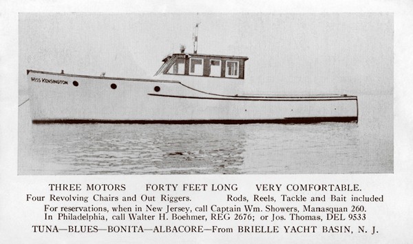 GLORY, Sheepshead Bay, Brooklyn, NY – 1940 LILLIE R, Brielle, NJ – 1940 LUCKY STRIKE, Cape May, NJ – 1940 MISS KENSINGTON, Brielle, NJ – 1940 PARAMOUNT III, Brielle, NJ – 1940 RALPH J, Cape May, NJ – 1940 SEA PIGEON II, Brooklyn, NY – 1940 SHEEPSHEAD BAY MOSQUITO FLEET, Brooklyn, NY – 1940 SKIPPER, New Brunswick, NJ – 1940 VAUD J II, Cape May, NJ – 1940 VENTURA, Bronx, NY – 1940 WHITBY II, Sheepshead Bay, Brooklyn, NY – 1940 YANKEE DOODLE II, Jersey City, NJ – 1940 BETTY, Atlantic City, NJ – 1941 BINGO, Brielle, NJ – 1941 EDNA L., Wildwood Crest, NJ – 1941 EFFORT III, Brooklyn, NY – 1941 ELAINE, Brooklyn, NY – 1941 ELAINE B, Brooklyn, NY – 1941 GLORY, Brooklyn, NY – 1941 Party Fishing Boats - Page 7Party Fishing Boats - Page 9
